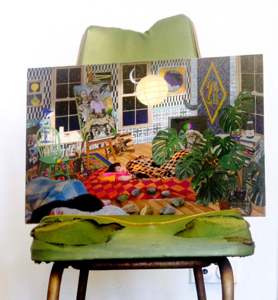 A painting sits in the gallery and acts as a collaged portrait of the current Gertrude studio artists while upstairs door texts document the story of each space as experienced during the sleepovers held onsite in the months leading up to the exhibition.
