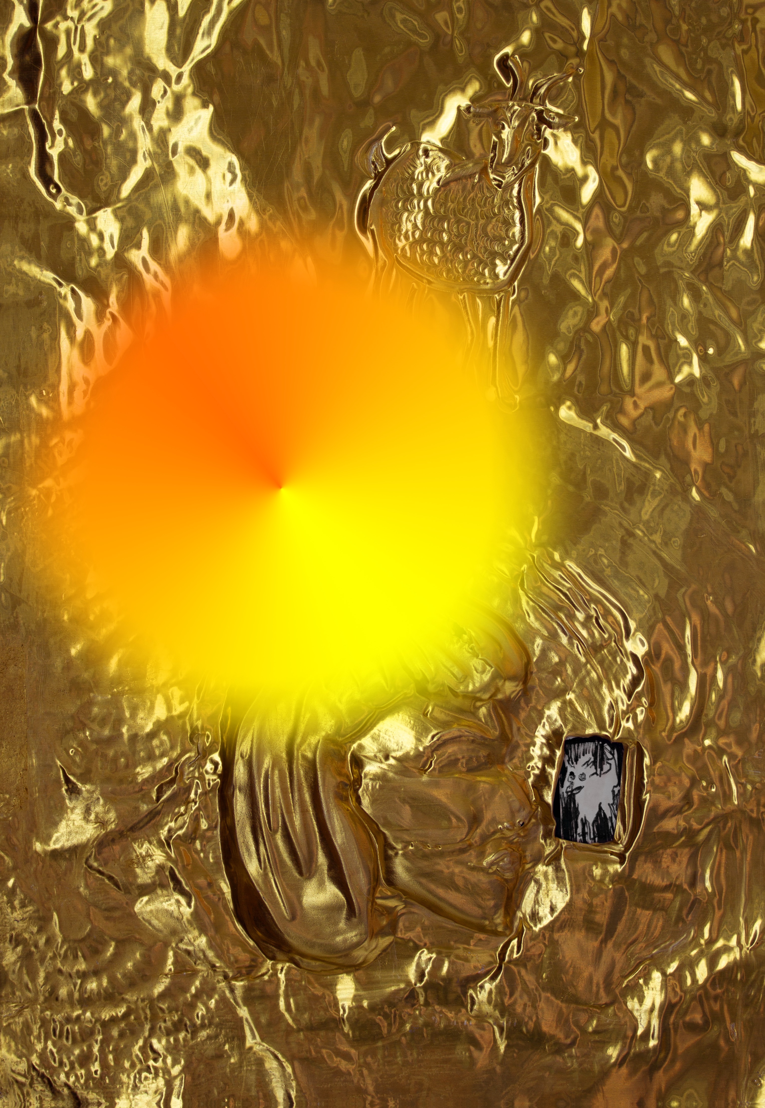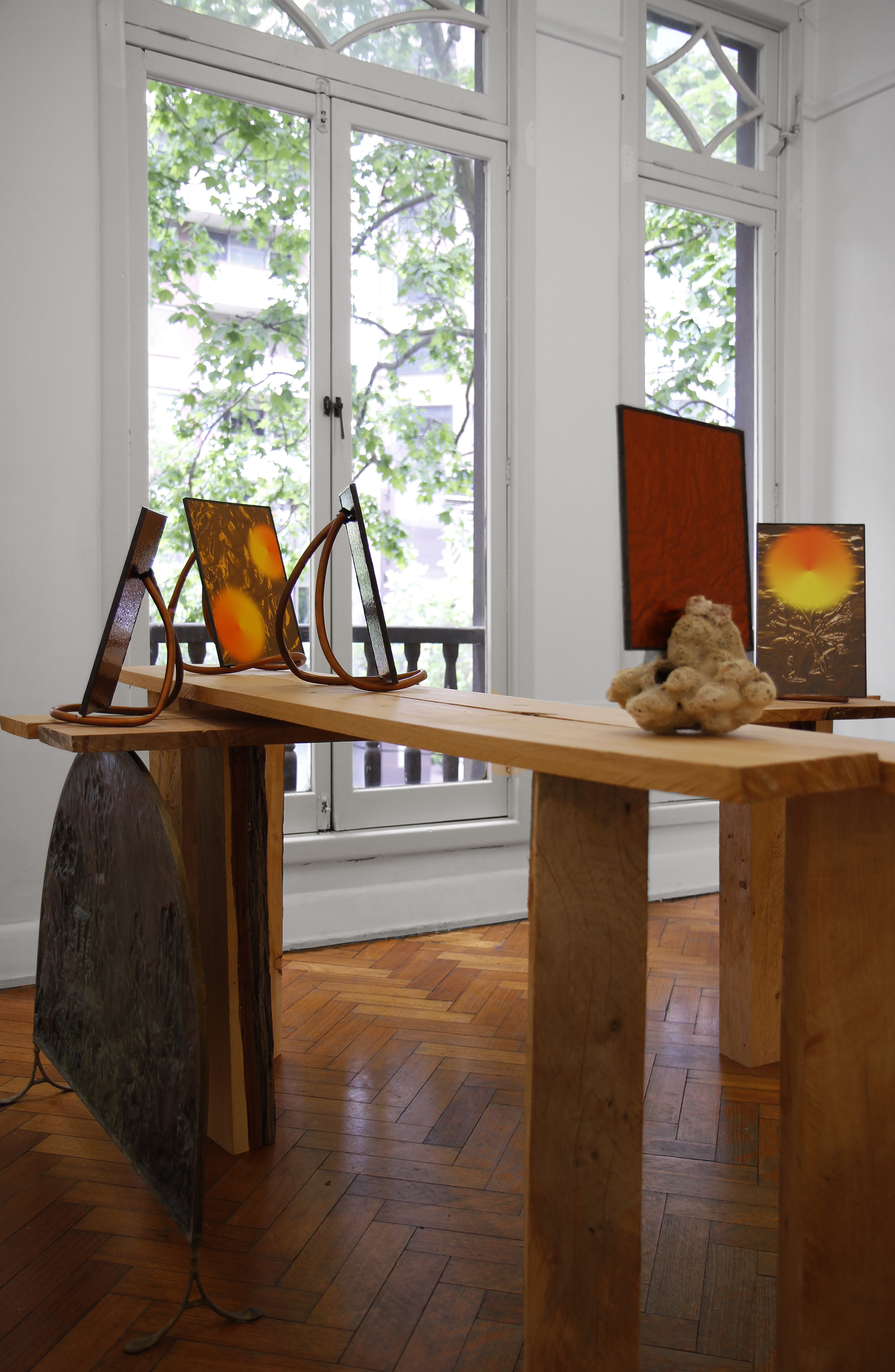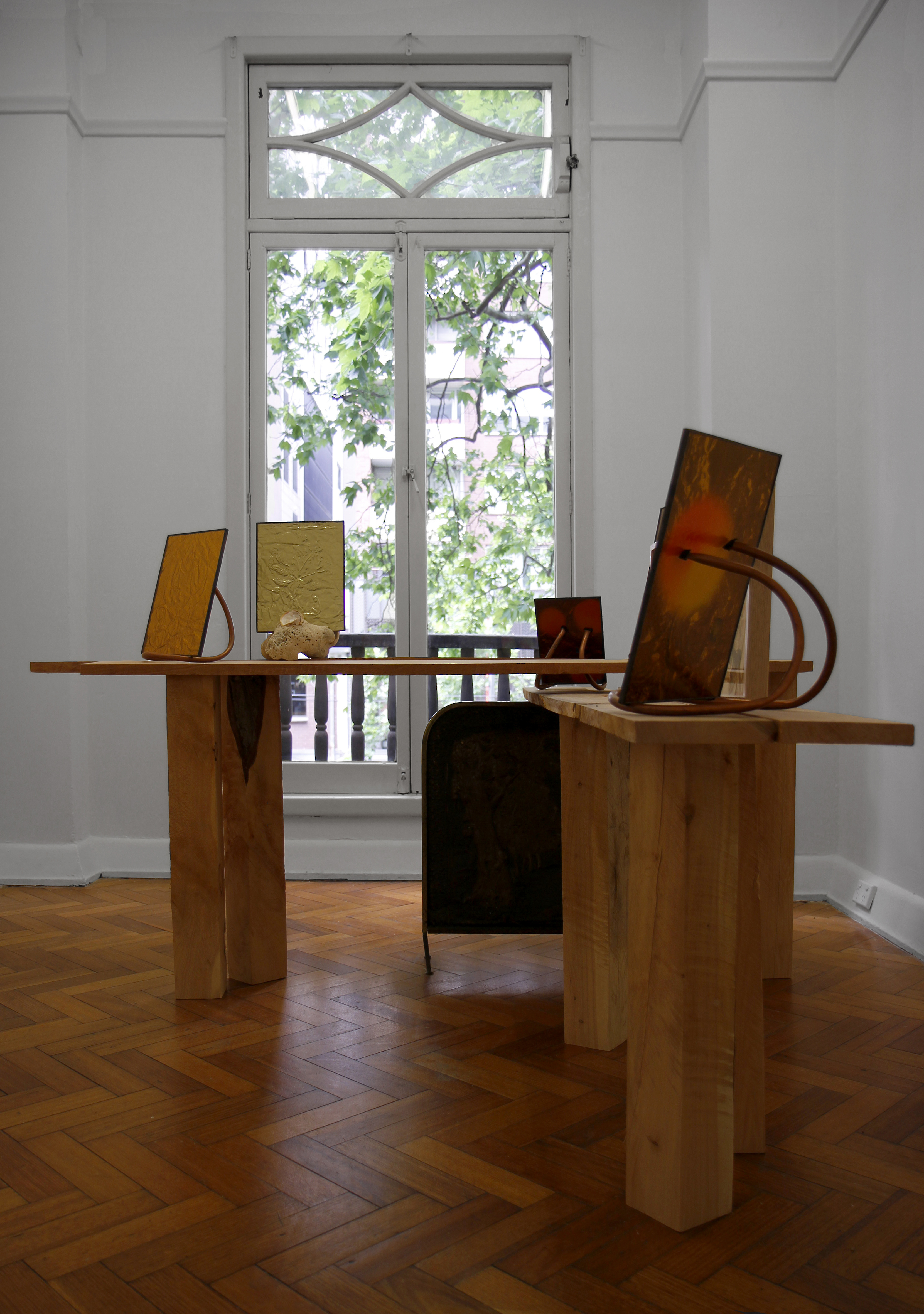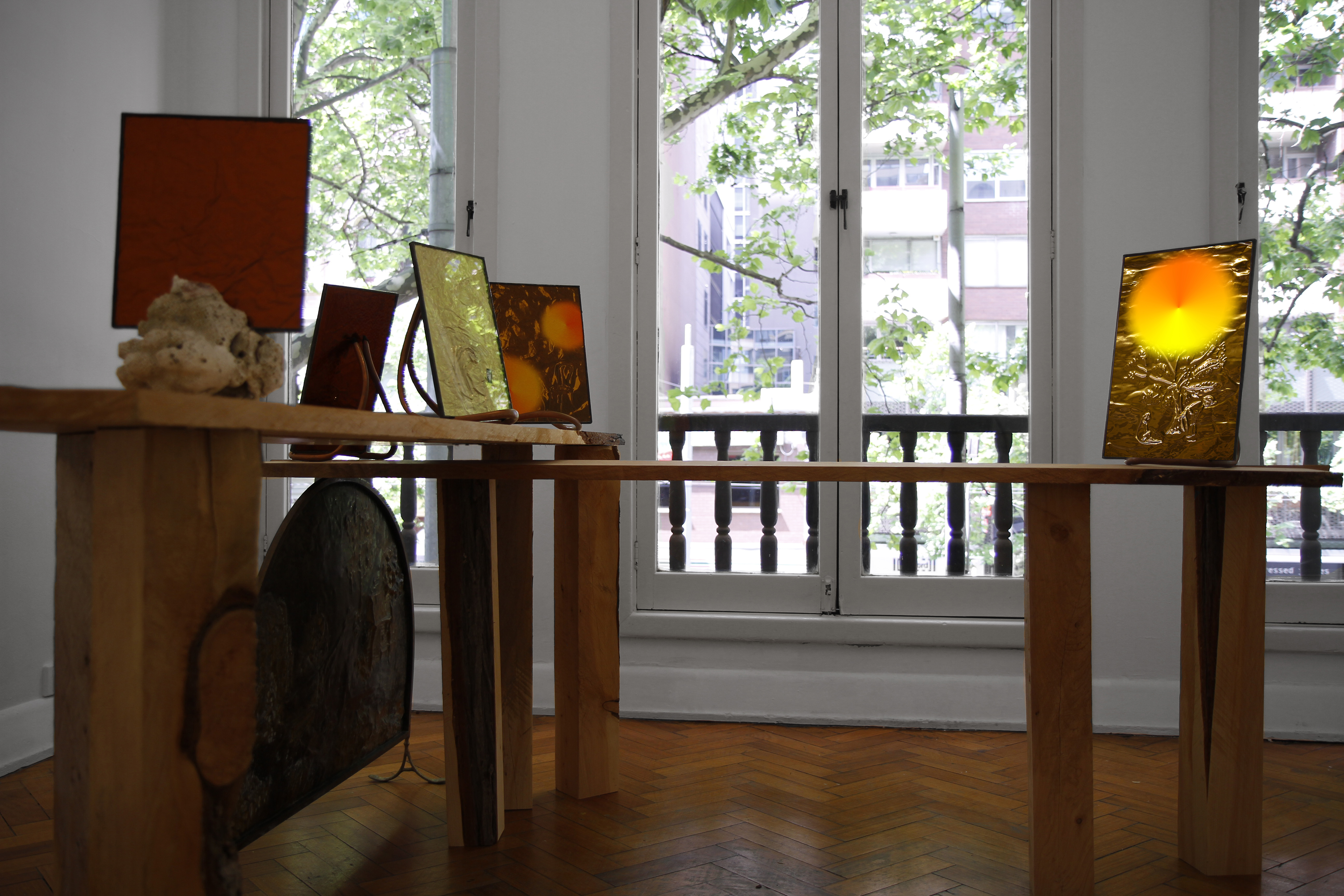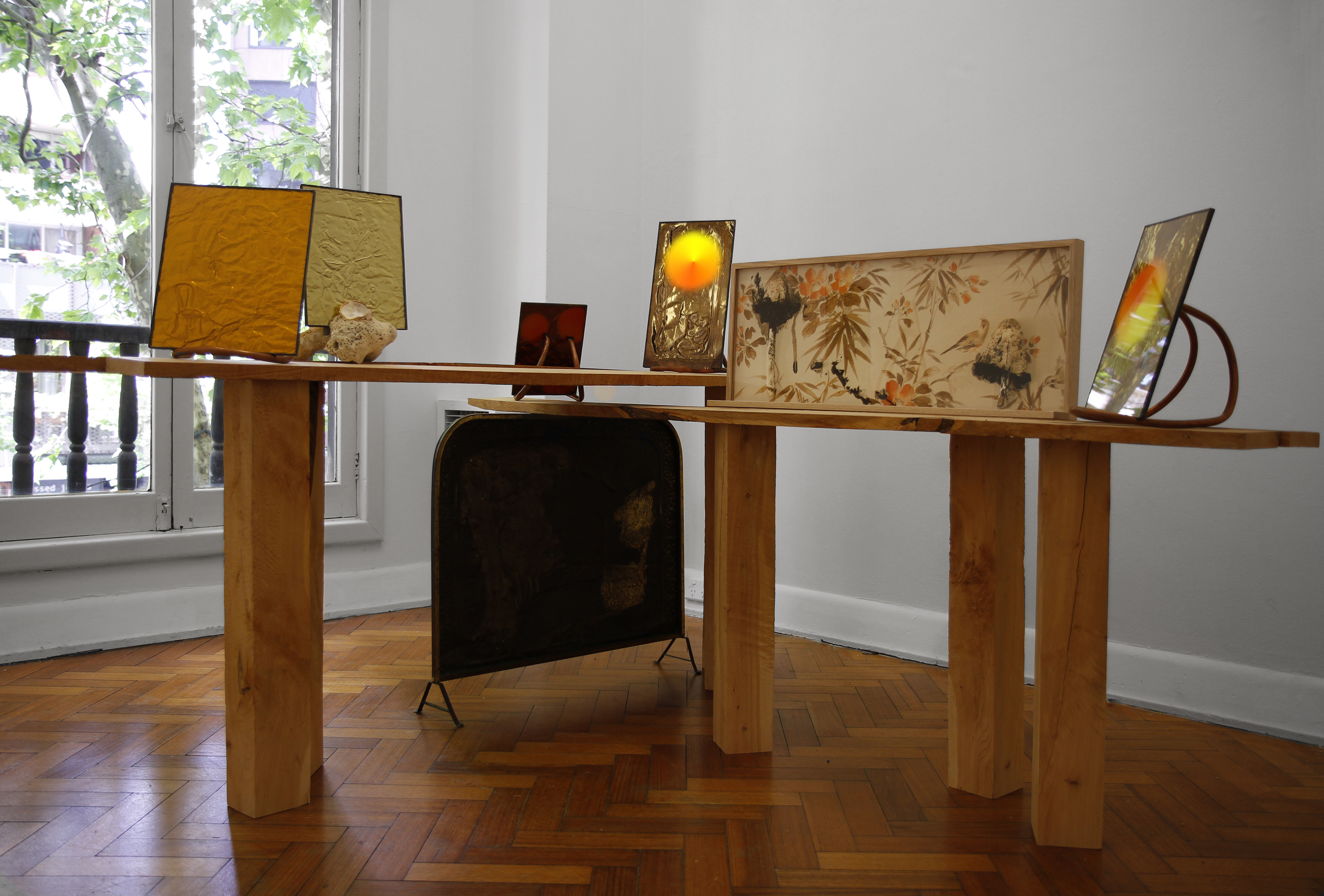 brass, digital print, amber glass, solder, macrocapa.