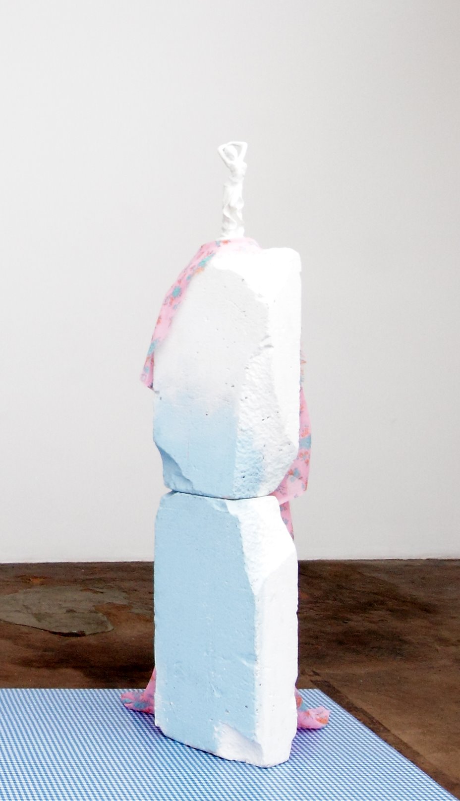 Within the exhibition space, blue and white no-place-like-home gingham covers part of the floor. Kent’s Roman Charity employs fabric – albeit more picnic than in the grand manner – to both hint at and hide. Like its Renaissance mould, each fabric fold signals another layer of desire or fantasy or potential groove for narrative twist. Desire lurks in each fold also as a kind of overt deception and visual cue for the body. Fuck me if you can.