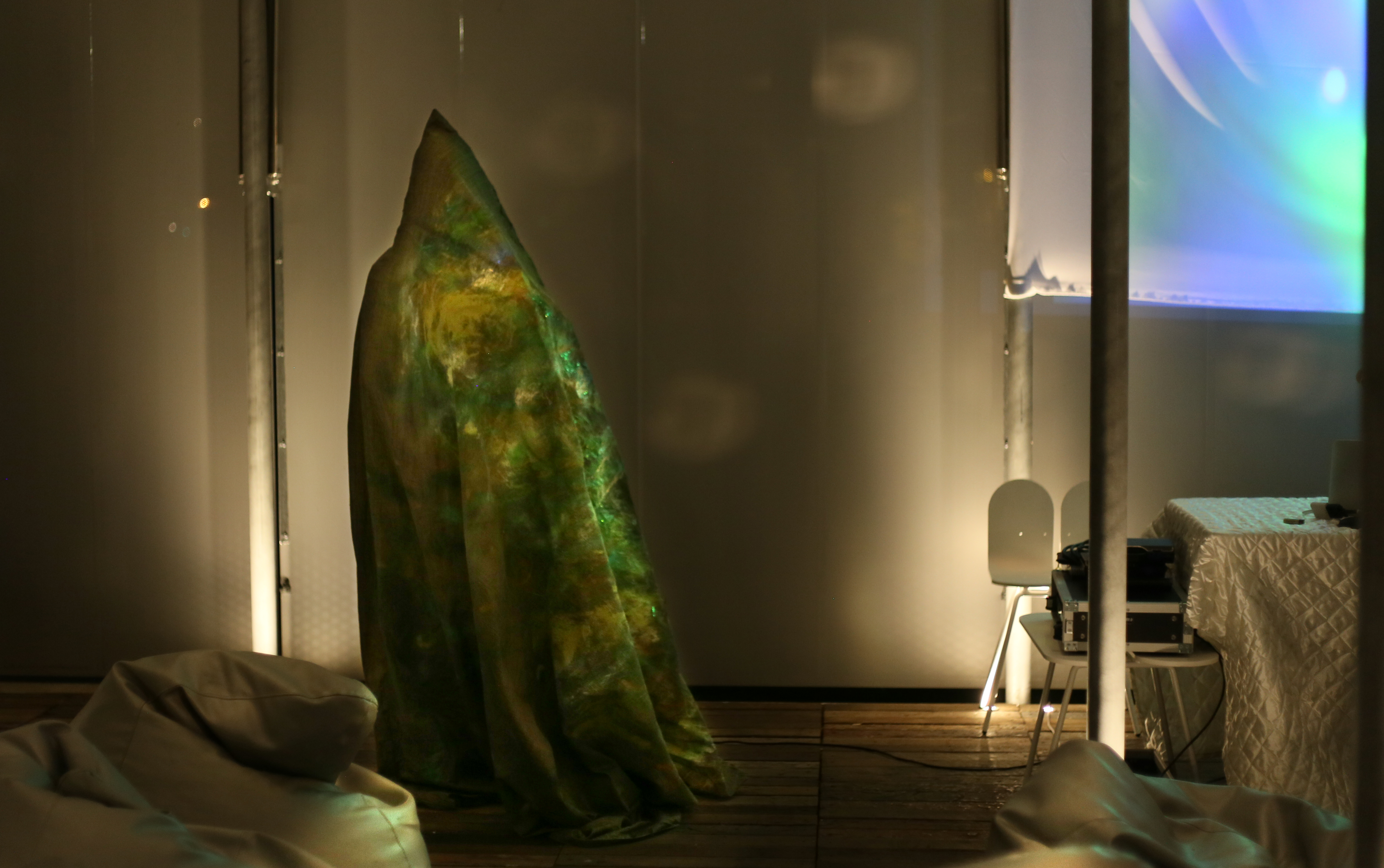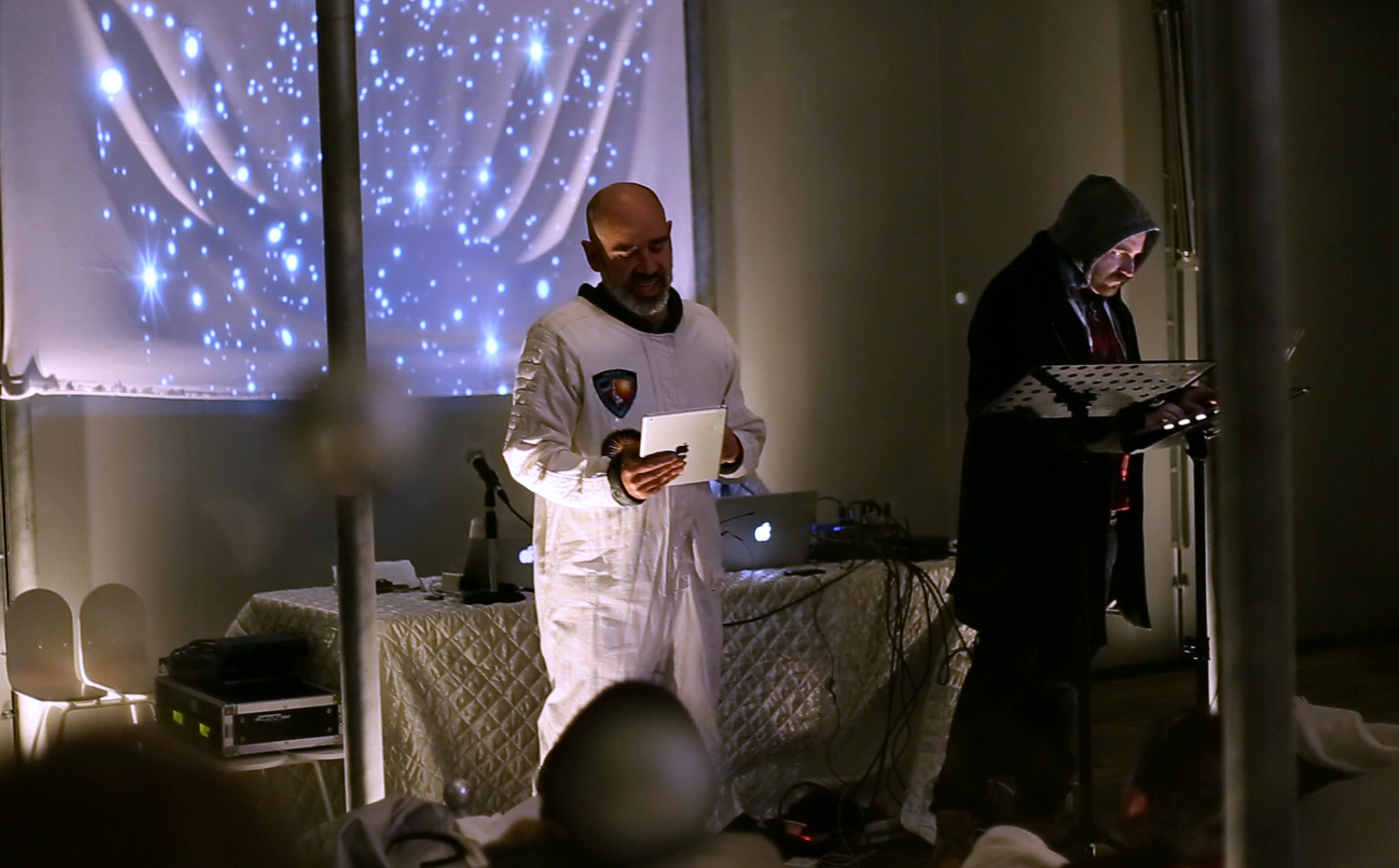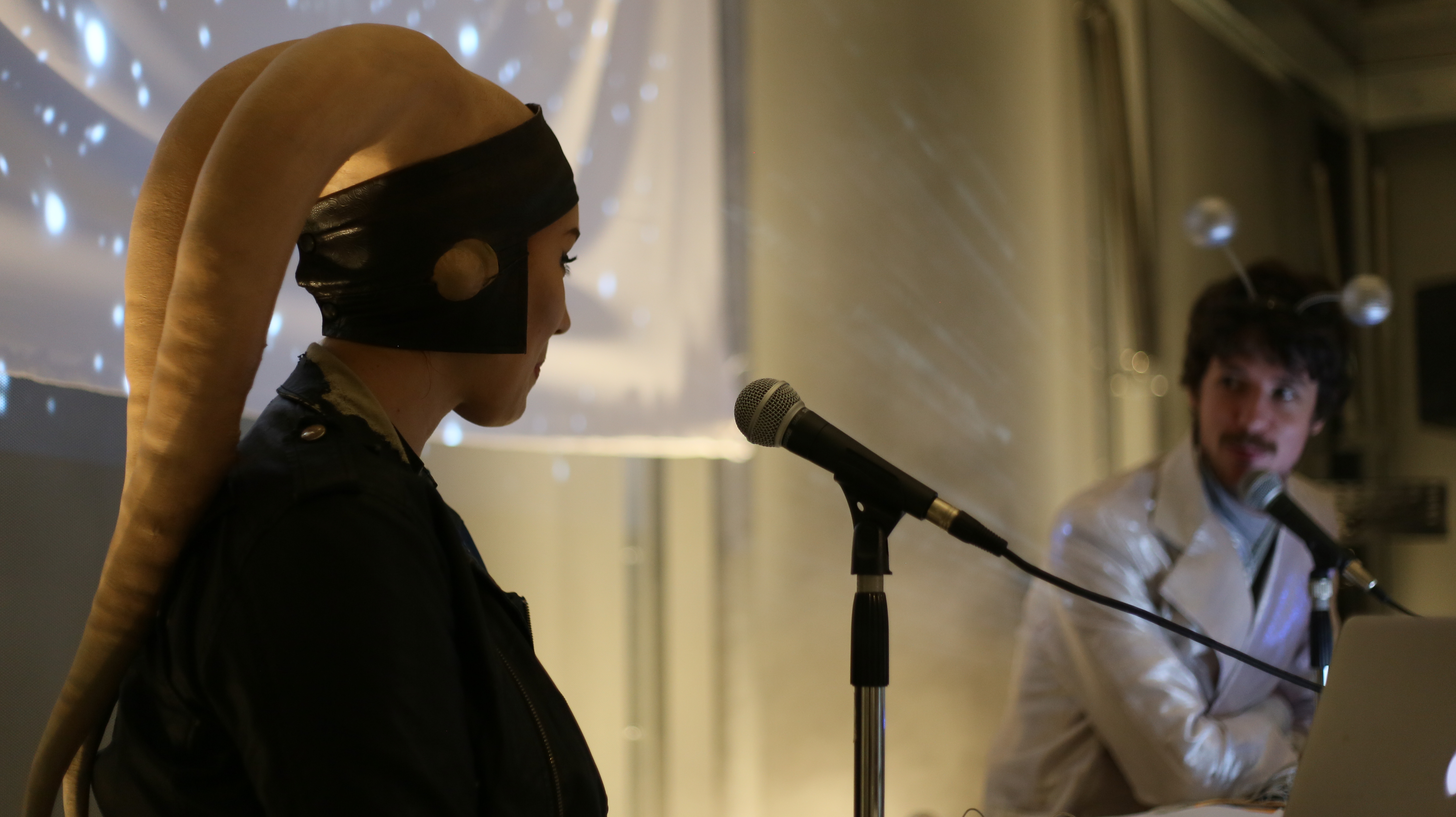 The evening’s events were curated and hosted by The Telepathy Project (Veronica Kent and Sean Peoples), and featured their collaboration with hypnotic chanteuse and multidisciplinary performer Sophia Brous (following on from her participation in the Barbican Centre’s In Dreams: David Lynch Revisited), who presented the premiere of (Space) Dream Triptych, an avant-garde space opera set in three parts, exploring the shifting dream states of the unconscious, longing and isolation, in infinite space. (Space) Dream Triptych will be performing Sophia in collaboration with Marshall McGuire (harp) and Joel Stern (electronics).